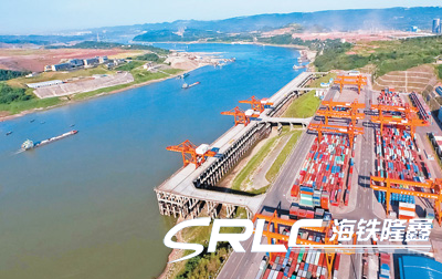 中国与新加坡在重庆果园港片区打造的中新多式联运基地,为“陆海新通道”提供了多式联运产业载体。2017年年底,首列从重庆果园港始发的中欧班列开行,中欧国际货运大通道与长江黄金水道无缝衔接。图为重庆果园港航拍