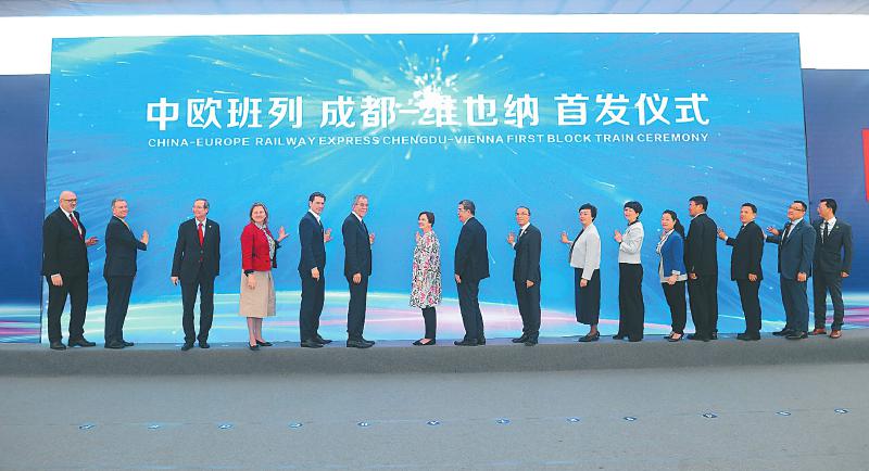首列直达奥地利首都维也纳的中欧班列(蓉欧快铁)从成都国际铁路港启程。奥地利总统范德贝伦、总理库尔茨等出席首发仪式