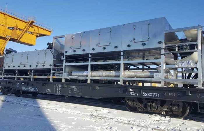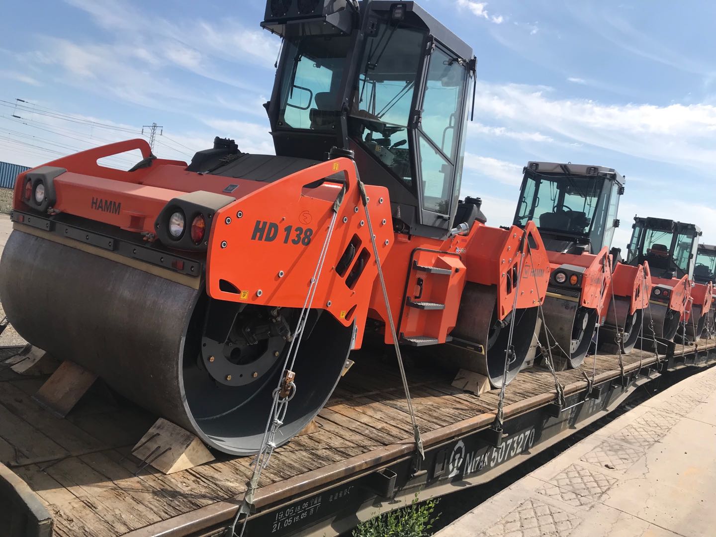压路机尺寸为5400*2200*3250,重14吨,使用铁路平板运输,从中国运输到哈萨克斯坦,门到站运输时间为20天左右。