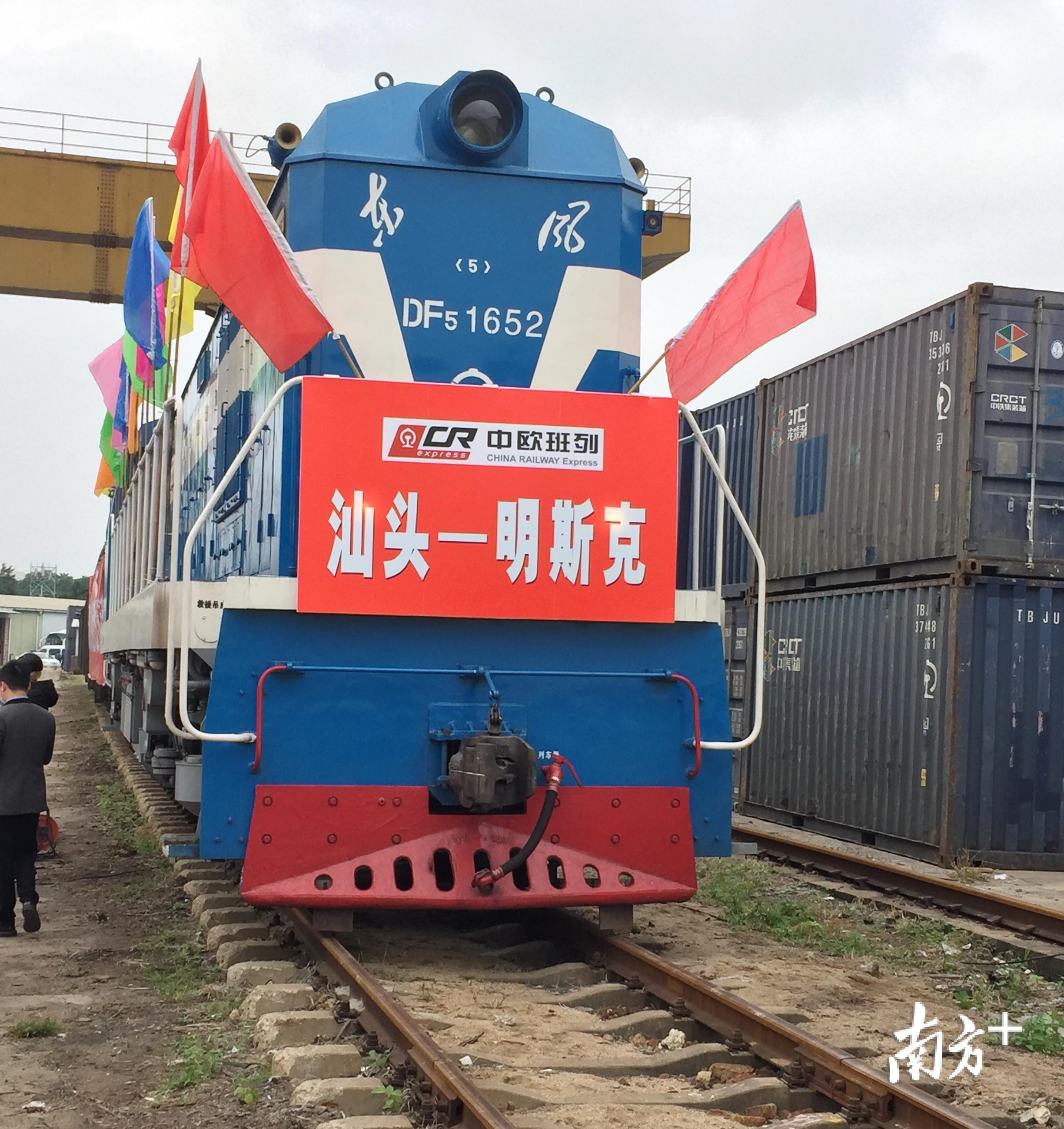 27日上午,汕头—明斯克国际货运班列从汕头北站首发。通过该班列,汕头与欧洲开展贸易运输的时间比全程海运节省一半以上,将加快汕头产品“走出去”步伐,助力汕头融入国家“一带一路”发展战略。